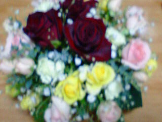 で、写真は今日フラワーアレンジメントの教室に通ってる姉様がやってみたモノ。